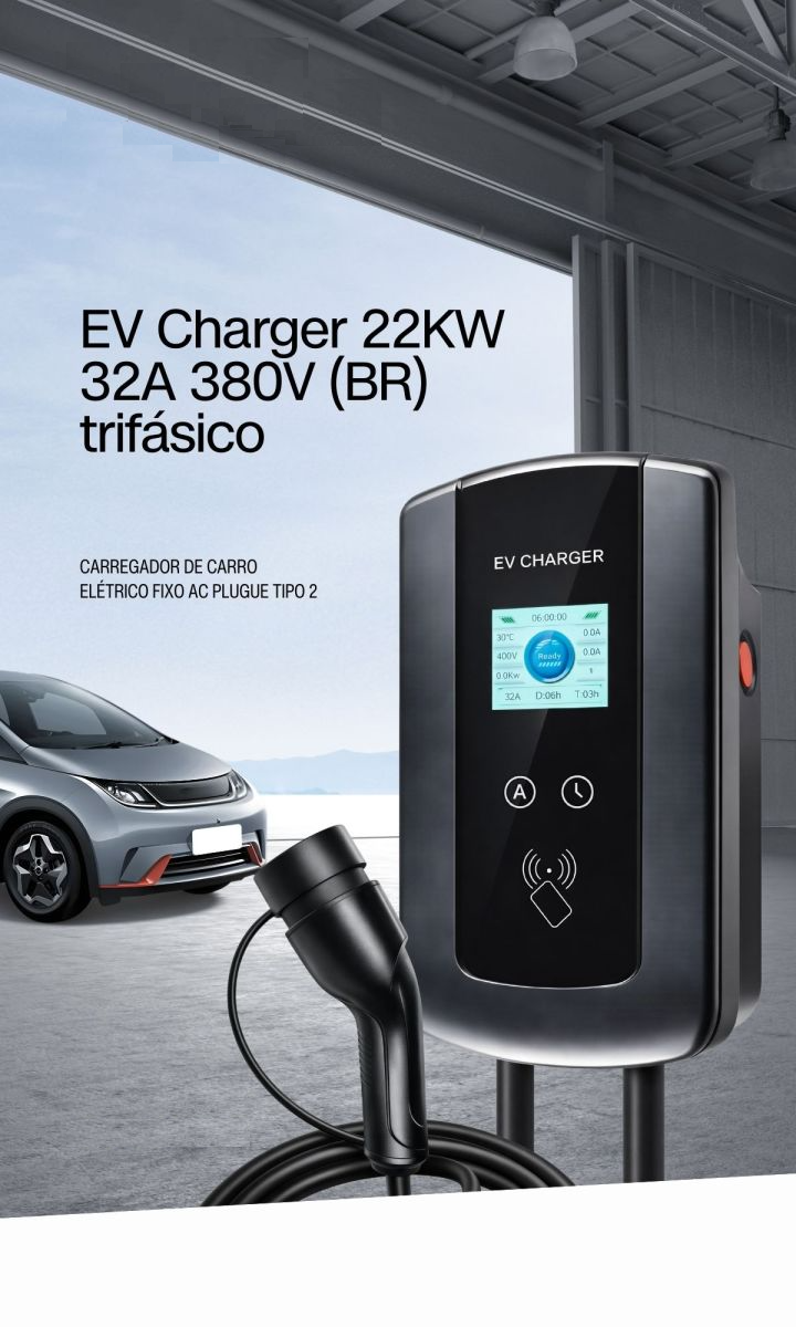CARREGADOR CARRO ELETRICO FIXO AC 22KW 32A 380V BR TRIFASICO